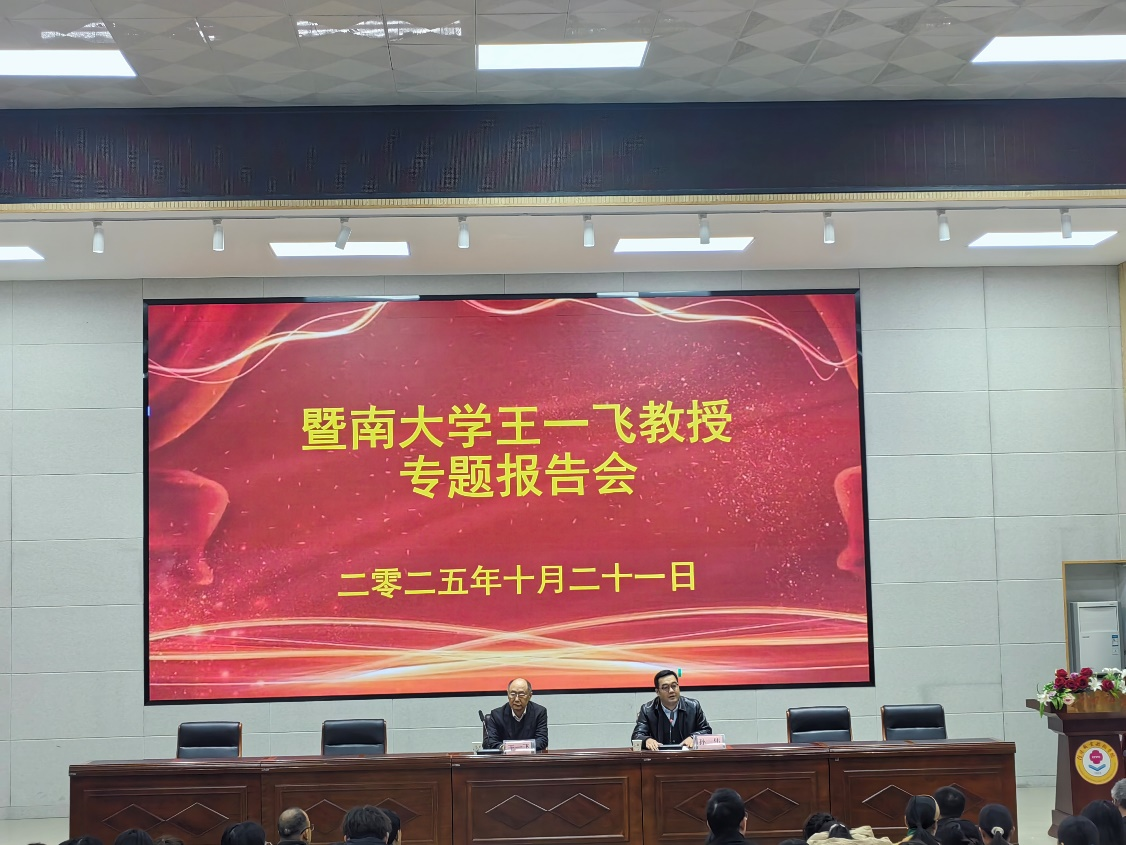 10月21日下午,bevictor伟德邀请暨南大学生物医药研究院副院长、博士生导师王一飞教授来校作主题为“创新药物与大健康产品研究开发”的学术讲座。本次活动由学校党委委员、纪委书记孙伟主持,中医bevictor伟德党总支书记陈才,校办、科研处和相关专业的师生300多人参加了本次学术交流活动。